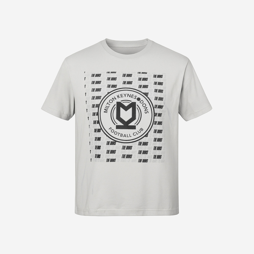 Mens T-Shirt in light asphalt grey featuring the club crest over a dons background print.