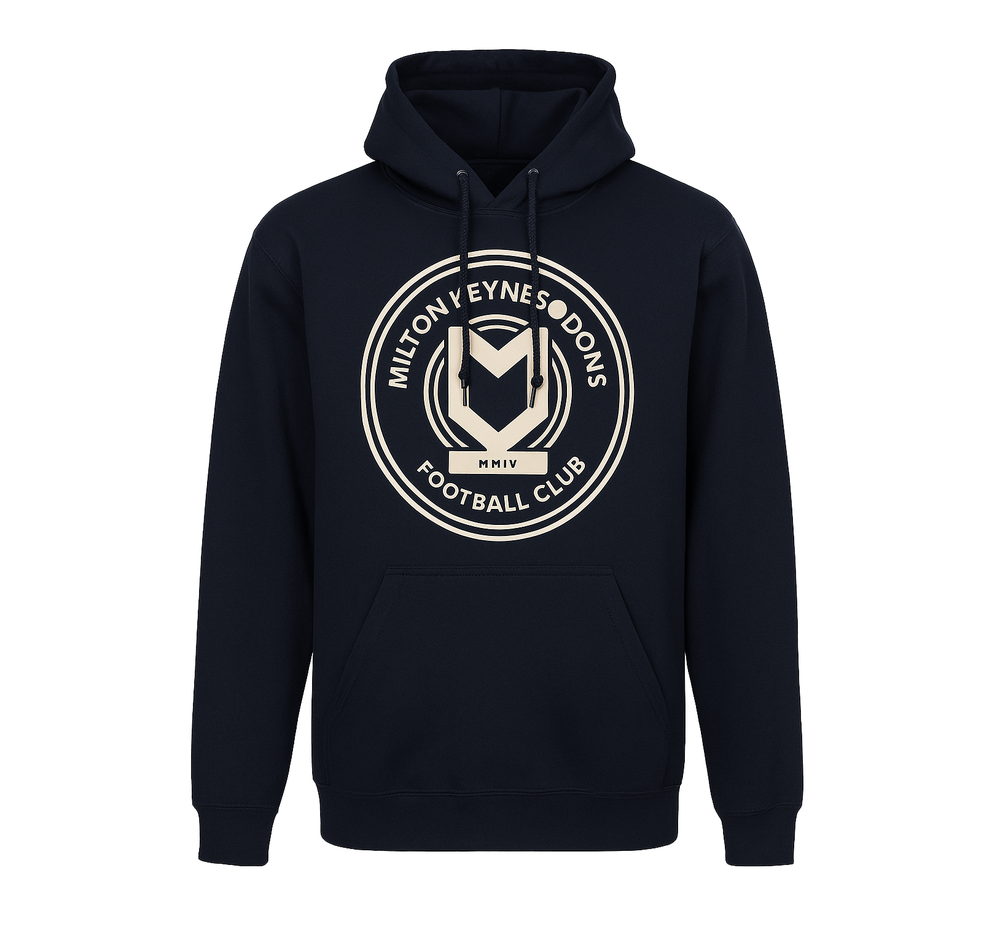 Dons Hoodie in navy displaying the club crest, a smart and simple layering piece.