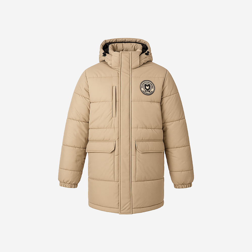 The Mens Sparta hooded jacket in stone is the perfect winter warmer! With double fronted cargo pockets and tonal crest.