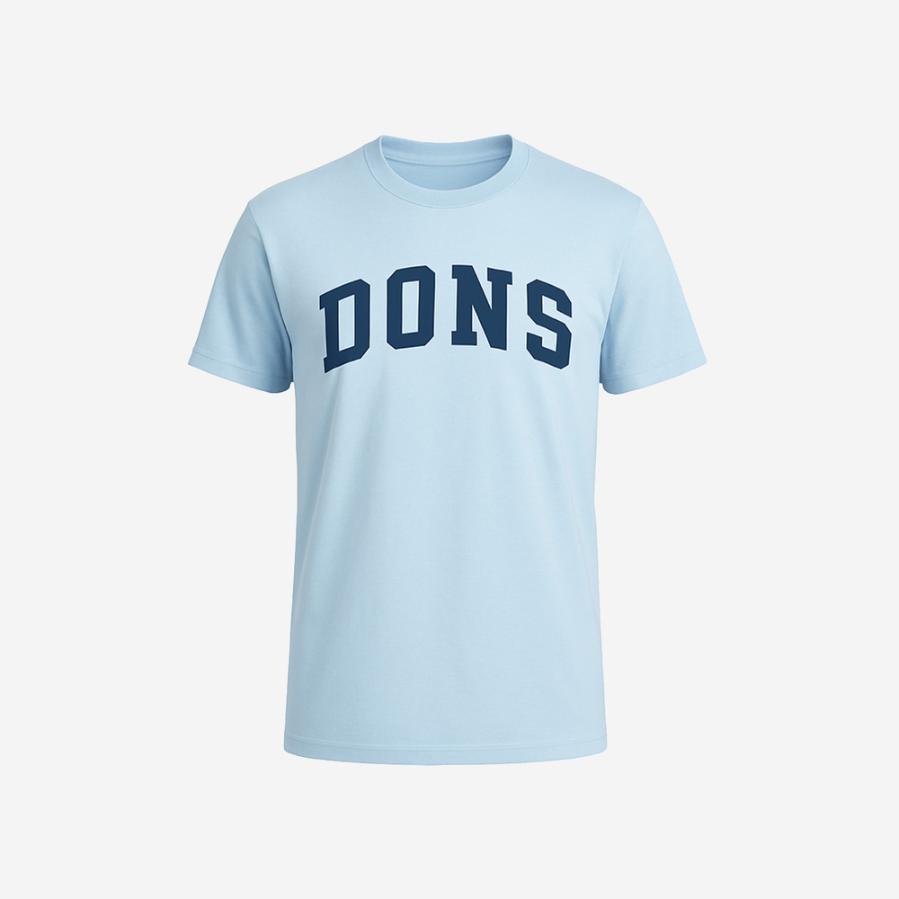 T-Shirt in light blue with a stamp design in our signature font. We are the Dons!