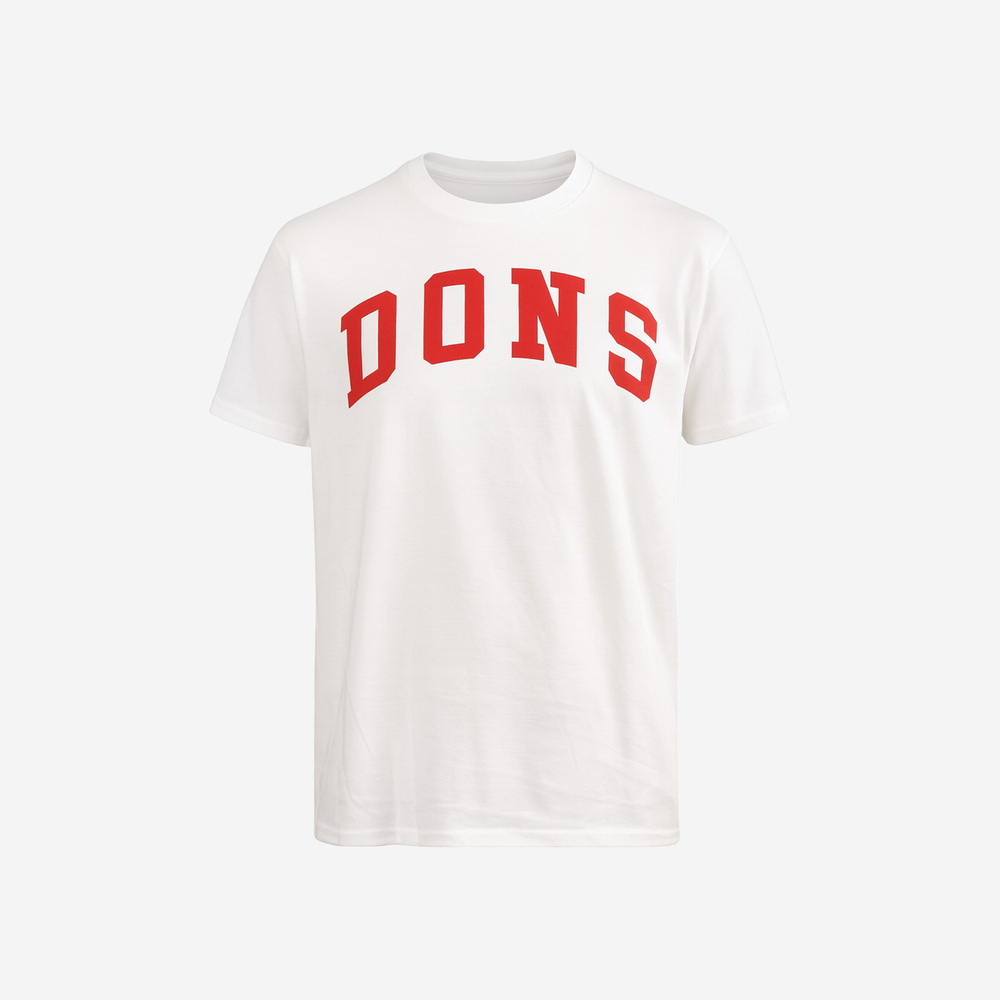T-Shirt in white with a stamp design in our signature font. We are the Dons!